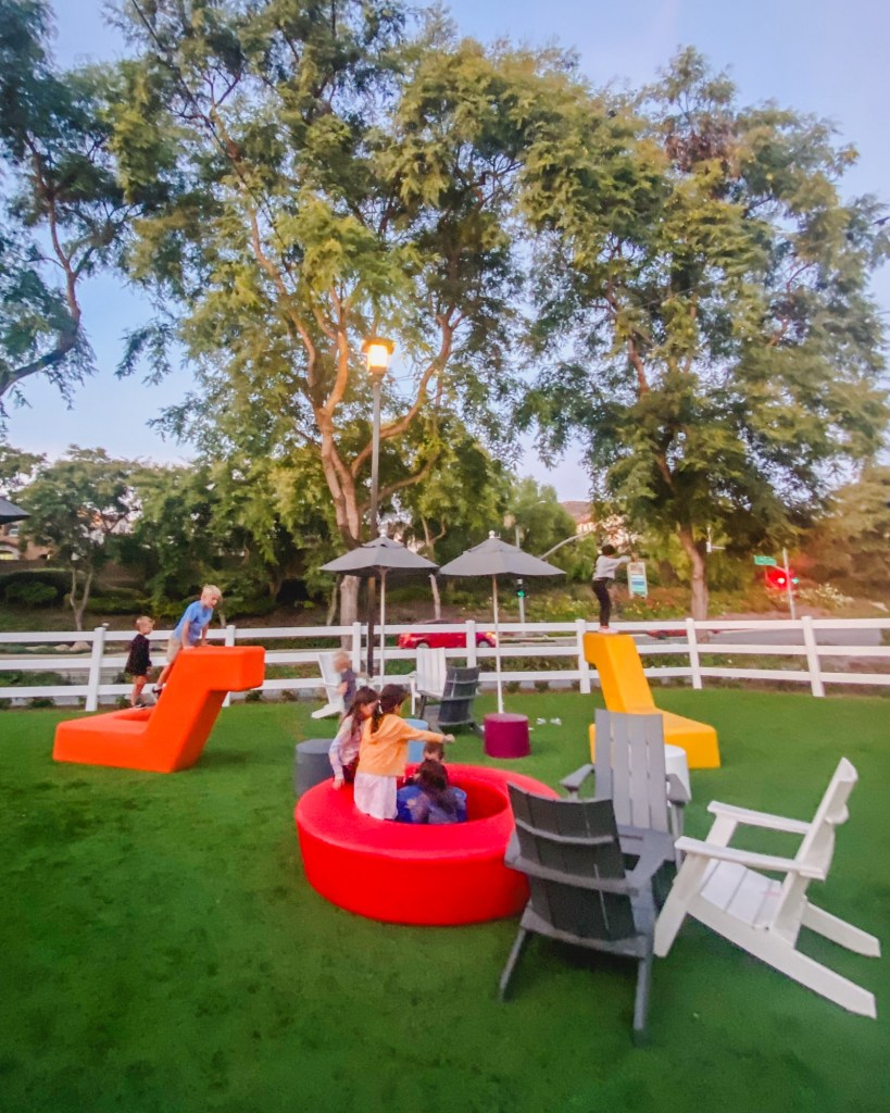 This isn’t one specific restaurant but tons of restaurants at Del Mar Highlands. The Sky Deck is located above Sprouts. What makes this kid-friendly is you can order anything from any restaurant and then eat it out on the patio by the fire!
