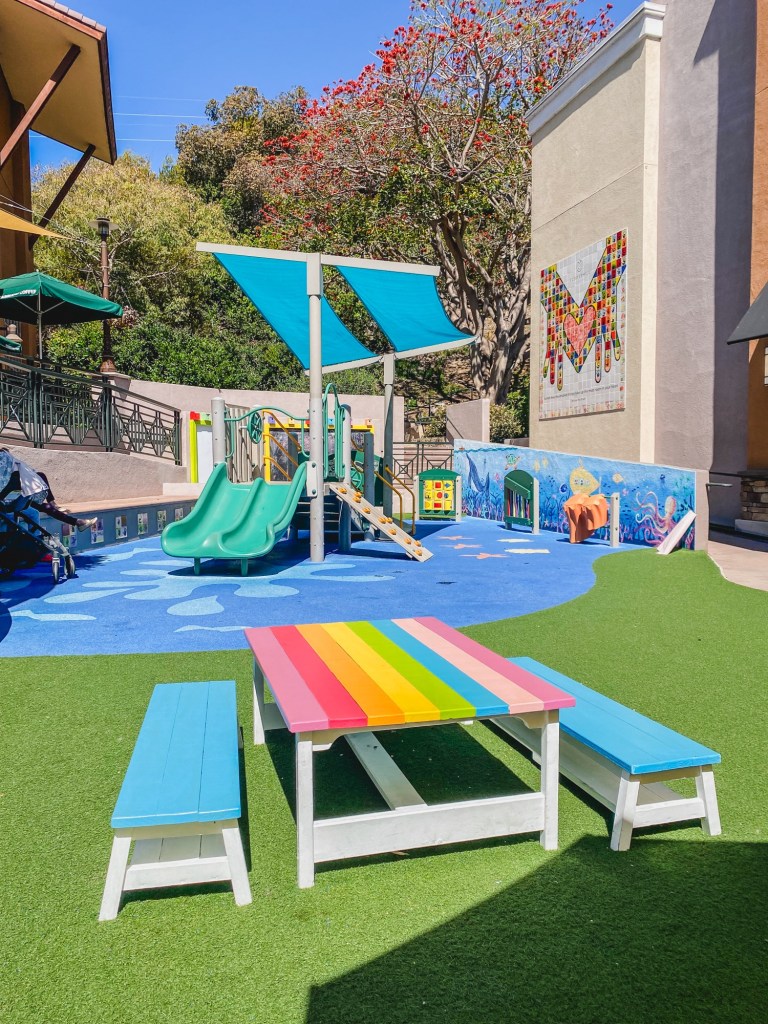 There’s no playground here, but I love this spot for dining out with a family! First off, the salads are AMAZING. The kid’s menu is huge. You are right on the water and it’s fun to walk around and visit different surfboards. The lunch menu is a little less expensive than the dinner menu. Make sure to stop by and visit the La Jolla seals afterward at The Children’s Pool!