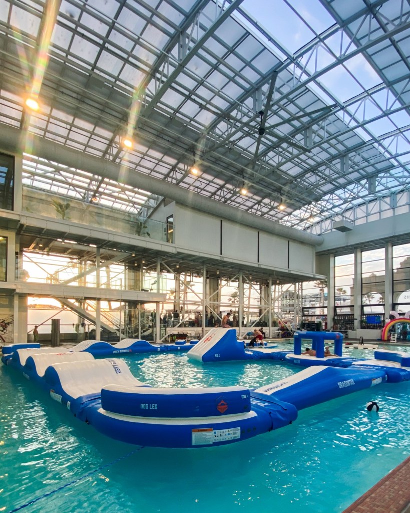 Right next to Belmont Park is the oldest public pool in San Diego. It’s housed in a beautiful art deco building with huge glass windows. The water is nice and warm. Though they change up their displays for the season, the water temperature is generally a warm 84 degrees. The best part though is their huge play structure! They recently updated their obstacle course and it’s so much fun. I saw lots of adults zooming around right next to the kids.