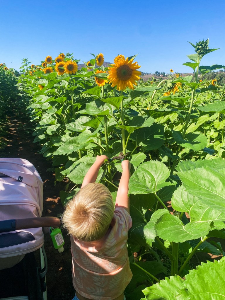 The best part about this pumpkin patch is the sunflower fields. They give you shears and you get to cut them yourself! Beware the bees though. Another advantage is it’s right off the 15 freeway, meaning you can skip the long drive out to Valley Center or Lakeside if you’re a coastal mom AND it’s not quite as hot.