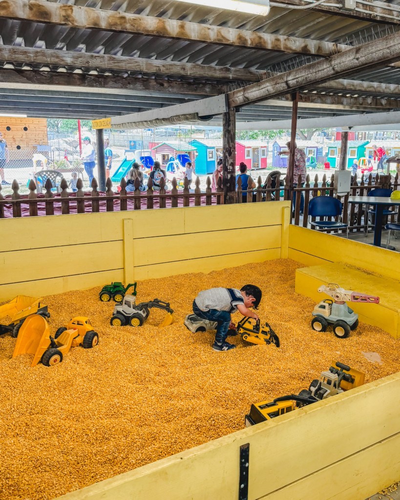 This pumpkin patch gets my vote for best pumpkin patch. The benefit to this place is that you pay one admission and get to do all the fun activities (though the wagon rides through the farm are extra). It cuts down on whining significantly. I would rather pay upfront and then just be able to relax than be berated by my kids for “one more train ride” for the whole visit. They have slides, duck races, a trike track, playgrounds, giant slides, gem mining, and a petting zoo. It’s basically kid paradise because there’s something to do around every corner. Our kids loved all the farm animals!